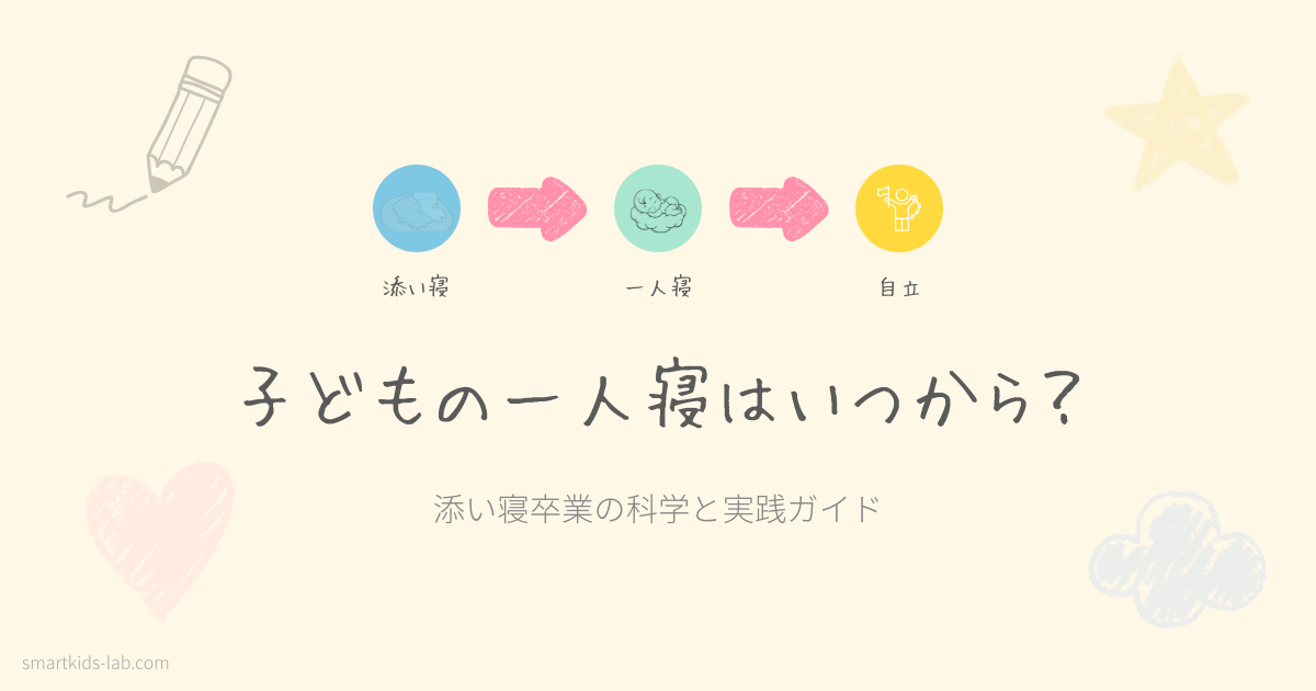 一人で寝る能力は自己調整力(self-regulation)——つまり「自分の気持ちや行動を自分でコントロールする力」——の獲得と密接に関連するが、生まれつきの能力ではなく段階的に発達するスキルであると報告されています。添い寝文化のある韓国の研究として、日本の家庭にも参考になります(Sleep Medicine Research 2025)。